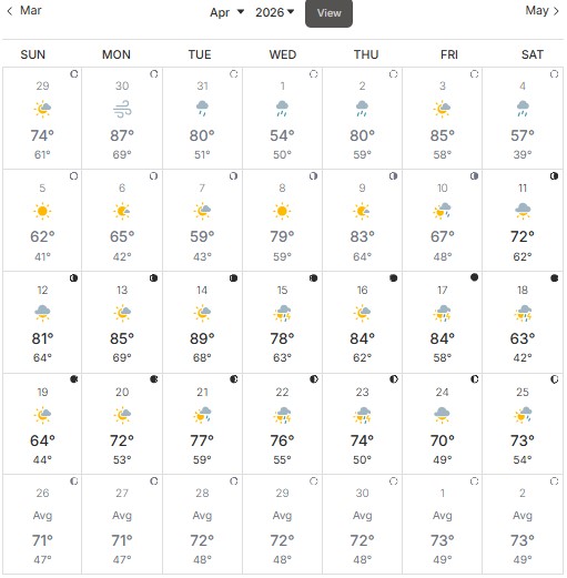 April 21st through May 4th, 2026